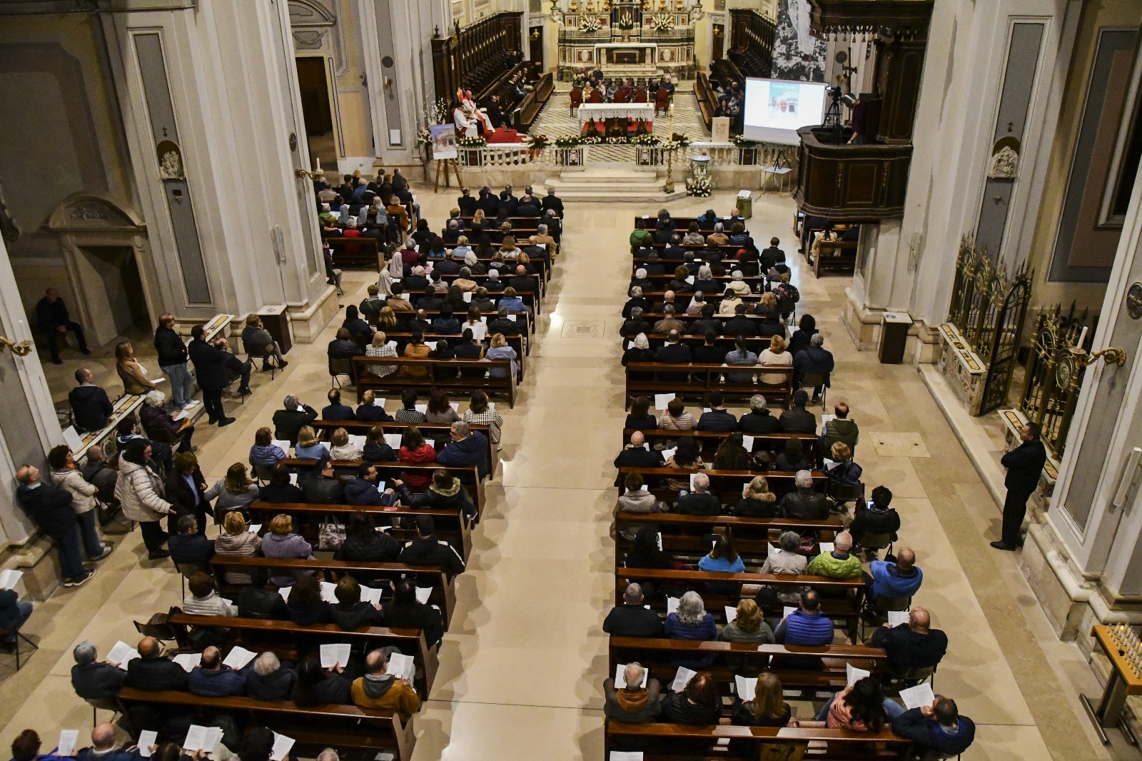 Una Cattedrale colma in ogni ordine di posto ha accolto questa sera la veglia di preghiera per Papa Francesco, segno di una comunità viva, grata, raccolta nella preghiera e nella riflessione.