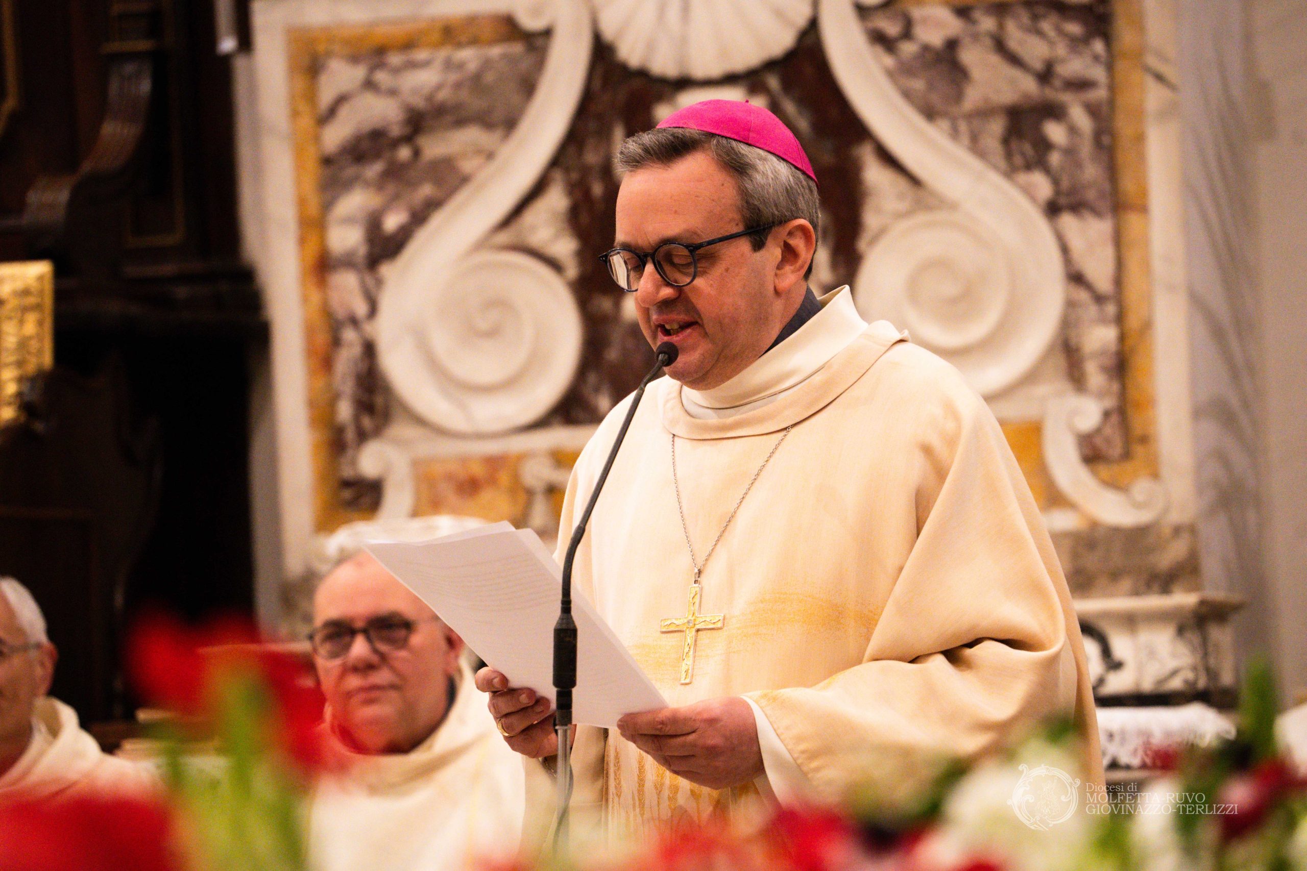 Carissima Eccellenza, carissimo don Mimmo, con gioia ed emozione stasera ti rivolgo parole di benvenuto in questa Cattedrale e, soprattutto, ti formulo gli auguri più affettuosi nella lieta ricorrenza del cinquantesimo anniversario della tua ordinazione presbiterale.