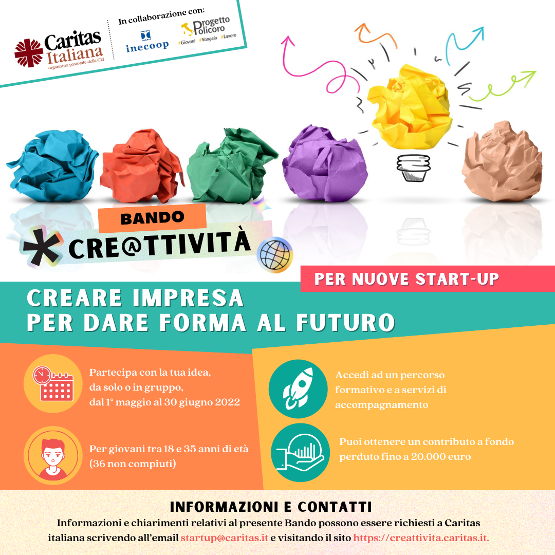 In sintesi, Cre@ttività è un bando promosso da Caritas Italiana per sostenere la nascita di nuove piccole iniziative imprenditoriali giovanili che prevedano un fabbisogno complessivo stimato per l’avvio di massimo 30.000 €.
