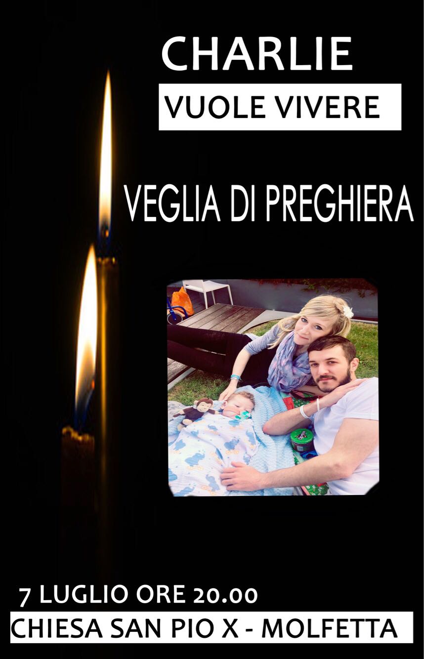 L'appuntamento è per Venerdì 7 luglio, presso la Chiesa San Pio X, alle ore 20. Charlie è un bambino inglese di 10 mesi affetto da una rara malattia genetica. I genitori hanno raccolto i fondi necessari per portarlo negli Stati Uniti per una cura sperimentale ma i medici, i giudici inglesi e la Corte Europea dei diritti dell'Uomo ritengono che vadano staccati i sostegni vitali.