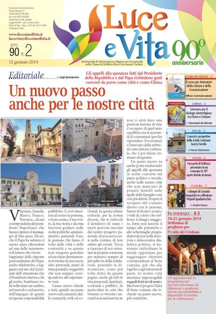 Un passo nuovo va anche posto traducendo gli appelli alla speranza in scelte concrete sul piano politico e sociale, anche nelle nostre città che non mancano di pesanti fardelli sulle spalle delle famiglie e sui ceti più deboli. Proprio il recupero del contatto diretto con le persone, l’avere di fronte i nomi e i volti di coloro che soffrono il disagio maggiore, forse non lascerà il tempo alle polemiche e alle schermaglie pregiudizievoli; pur nella doverosa e democratica dialettica politica, si dovranno individuare le strade opportune per raggiungere obiettivi corrispondenti al bene comune, più che alle logiche e agli interessi di parte. Le nostre città meritano improrogabili segnali forti in tal senso.