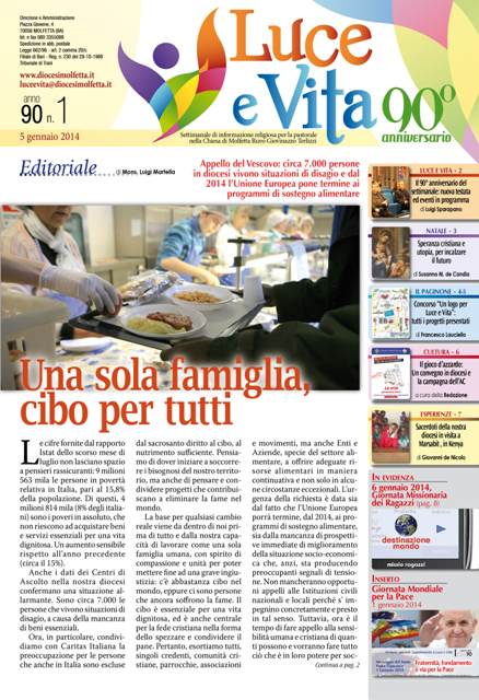 La base per qualsiasi cambio reale viene da dentro di noi prima di tutto e dalla nostra capacità di lavorare come una sola famiglia umana, con spirito di compassione e unità per poter mettere fine ad una grave ingiustizia: c’è abbastanza cibo nel mondo, eppure ci sono persone che ancora soffrono la fame. Il cibo è essenziale per una vita dignitosa, ed è anche centrale per la fede cristiana nella forma dello spezzare e condividere il pane. Pertanto, esortiamo tutti, singoli credenti, comunità cristiane, parrocchie, associazioni e movimenti, ma anche Enti e Aziende, specie del settore alimentare, a offrire adeguate risorse alimentari in maniera continuativa e non solo in alcune circostanze eccezionali. L’urgenza della richiesta è data sia dal fatto che l’Unione Europea porrà termine, dal 2014, ai programmi di sostegno alimentare, sia dalla mancanza di prospettive immediate di miglioramento della situazione socio-economica che, anzi, sta producendo preoccupanti segnali di tensione. Non mancheranno opportuni appelli alle Istituzioni civili nazionali e locali perché s’ impegnino concretamente e presto in tal senso. Tuttavia, ora è il tempo di fare appello alla sensibilità umana e cristiana di quanti possono e vorranno fare tutto ciò che è in loro potere per soccorrere le persone in difficoltà.
