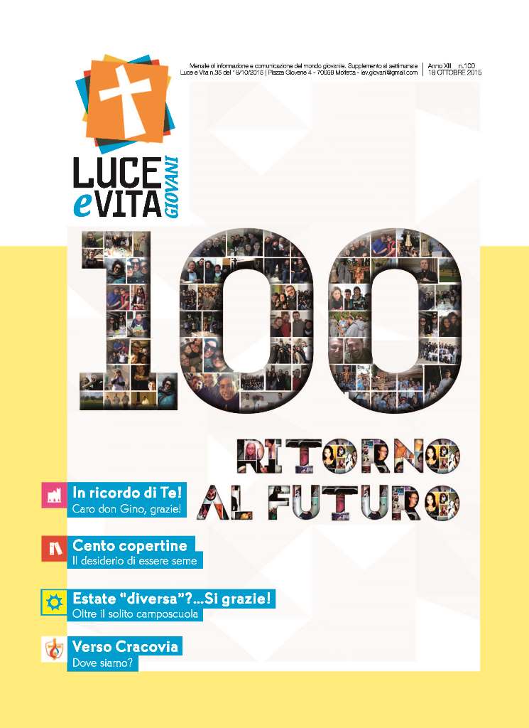 Siamo arrivati a 100 Luce e Vita Giovani! Riprendiamo dopo la pausa estiva la pubblicazione mensile del giornale dei giovani …questo numero, celebrativo e programmatico, ha subito diversi ritardi e rimaneggiamenti a causa degli ultimi eventi non felici della nostra diocesi.