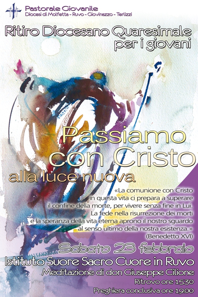 Sabato 23 febbraio, presso l’Istituto Suore Sacro Cuore in Ruvo ; ritrovo ore 15.30, preghiera conclusiva ore 19.00.